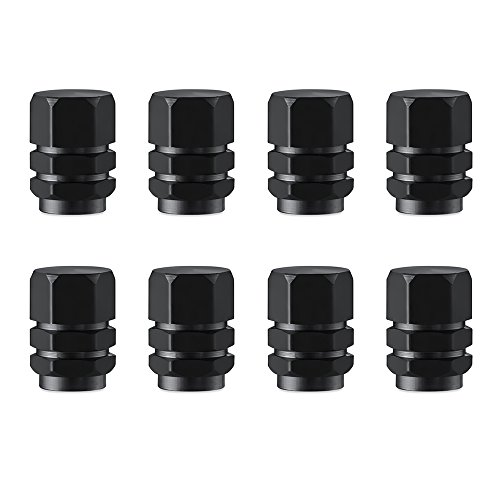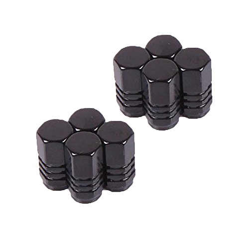 Dsmile Hexagon Style Polished Aluminum Black Chrome Tire Valve Stem Caps (Pack of 8)