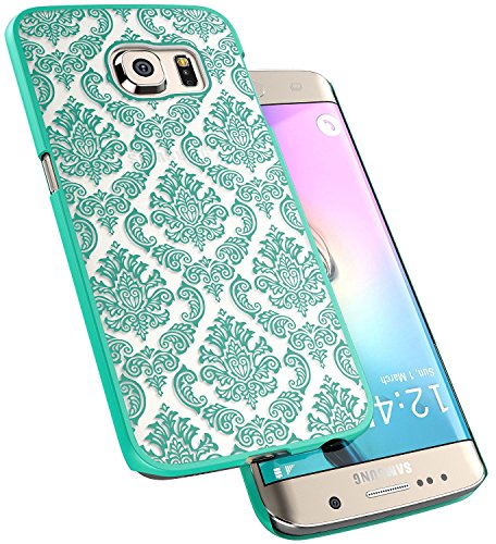 S6 Edge Case, Colorful [Damask] Rubber Coating Ultra Slim Premium Fit Hard Hybrid PC Shell Case Protective Series Cover Screen Protector for Samsung Galaxy S6 Edge-Green