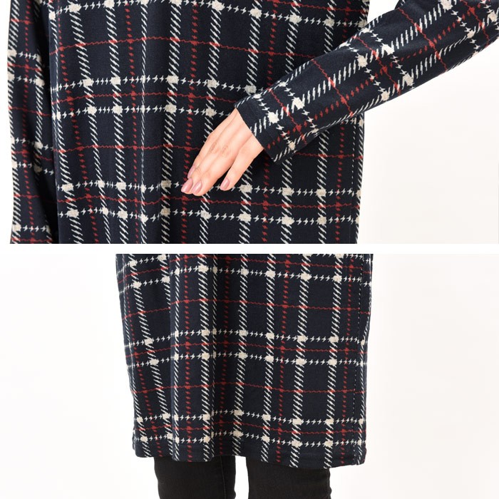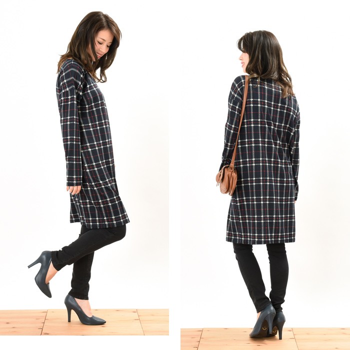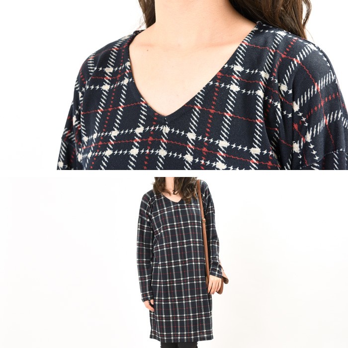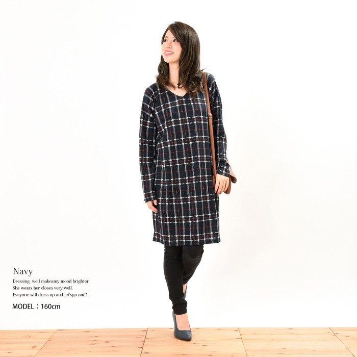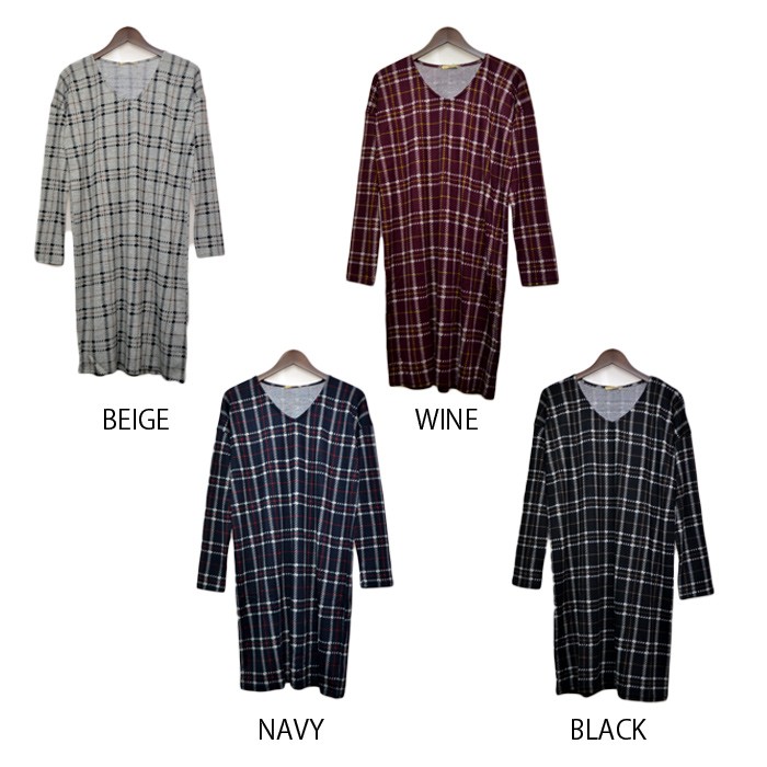 ゆったりと長めの着丈で体型カバーもしっかりとできるので、幅広い年齢層の方に大人気です♪人気の高いチェック柄は、コーディネートに取り入れやすく着回しがしやすいのでワードローブにお使いいただけます。Vネックデザインは、首回りがスッキリと見えて着やせ効果もあるのでオススメのデザインです。Mサイズ Lサイズ