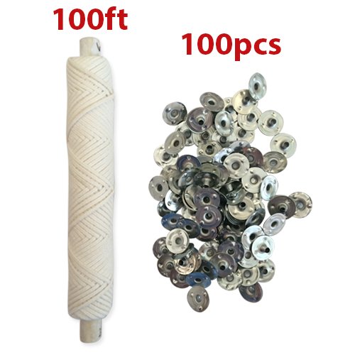 - 1 Braided Candle Wick Spool 100ft (30,48 m) Long and 100 Metal Sustainer Tabs (Dia:0.51" (12,5mm) in 1 pack!; Perfect for Making your own candles with diameters opening Less than 2 inches; Wicks are easy to cut down to the size you want (Pre-measure & cut your wick, put and thread it through. Pinch the center with a pair of plyers. Make sure you soak the wick in oil or wax before use to provide some instant fuel for the flame so there's something to burn before the melt pool builds.