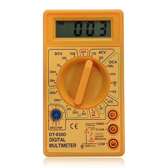 상품 내용 설명: 테스트 DC 전압, AC 전압, DC 전류, 저항, 다이오드, 부저 배터리, 연결 레드 테스트 리드 " V, Ω, 엄마 " 잭 블랙 테스트 리드 " COM " 잭. 테스트 현재 더 200mA, 연결 레드 테스트 리드 " 10A DC " 잭 블랙 테스트 리드 " COM " 잭. 테스트 확대 라디오 트랜지스터, 턴 스위치 hFE 위치 연결 트랜지스터 위해 여덟 홀드 잭. 적합한 테스트 배터리, 단자, 전자 장비, 모터 제어, 전원 공급, 등