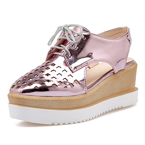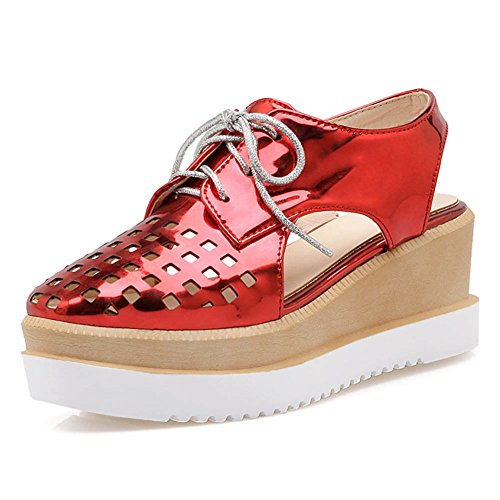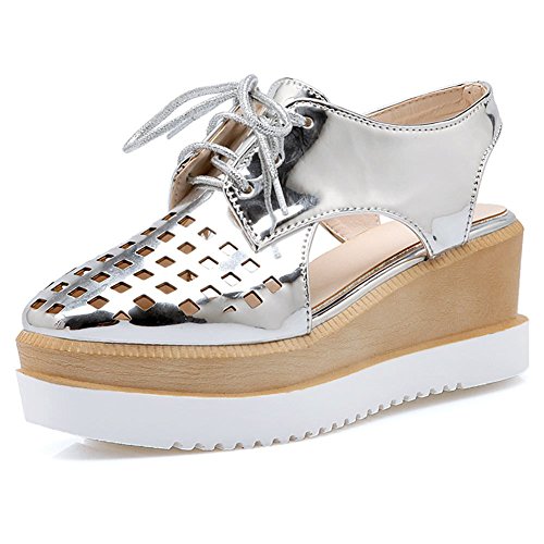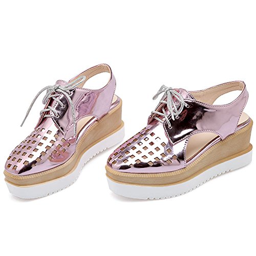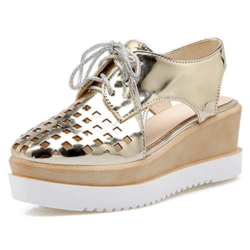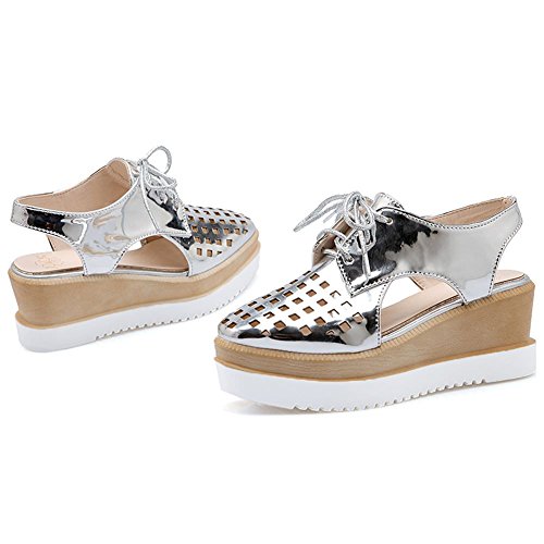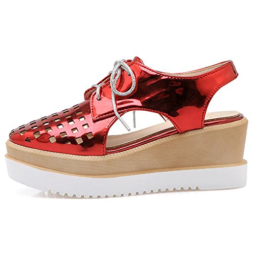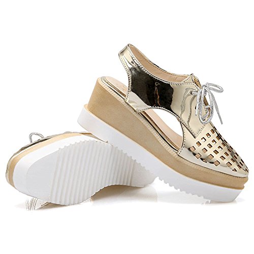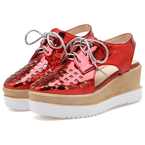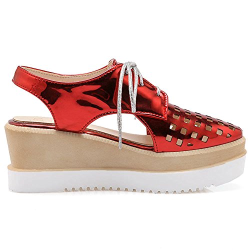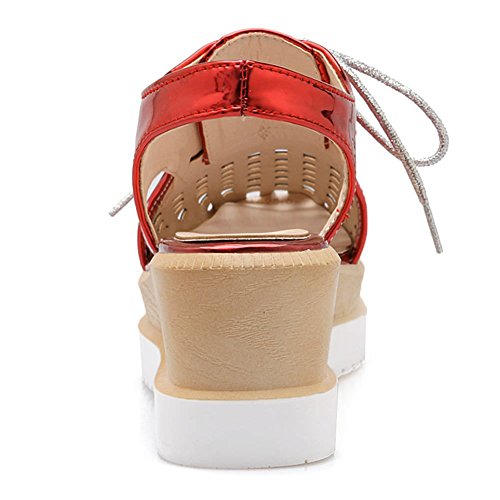 (DecoStain)/Women's/Sandals/DIRECT FROM USA/DecoStain Women's Patent Leather Lace Up Cut-Out Square Toe Flat Platform Sandals