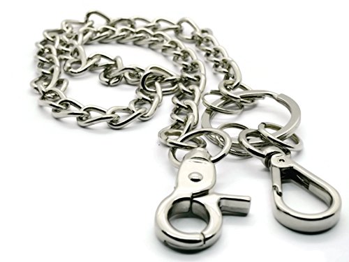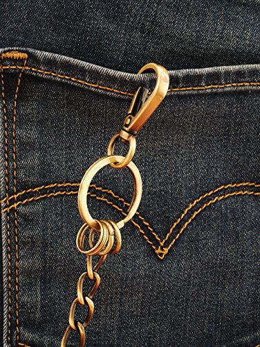 BrownBeans Steel Alloy Wallet Chain BBKC7005A01 ** Brass Tone and Silver Tone are color option. ** 18 inches chain with two different carabiner hooks (as in the picture). ** 1.7 inches long each hooks ** 1 inch keyring holder and 2 small split keyrings. ** Total length: about 22.5 inches (Included 2 carabiner hooks) ** Lightweight 2.24 OZ., Comfortable to carring everyday ** Two different clips made you feel easy to hook with your jeans, trousers and wallet. ** Casual street fashion outfits for men teens or boys 0