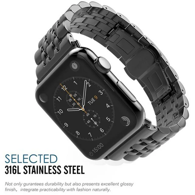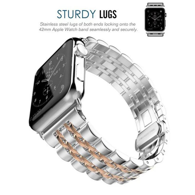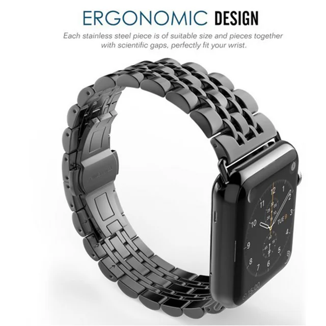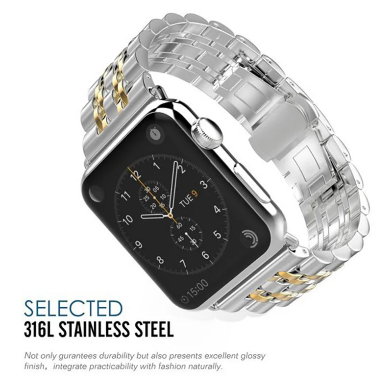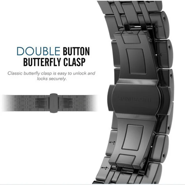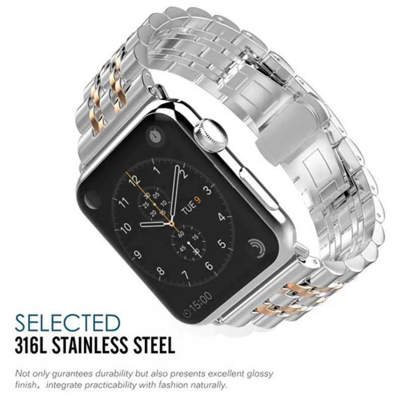 상품 내용 금속 스테인레스 스틸 7 포인트 시계 밴드 애플 시계 스트랩 블랙 실버 로즈 골드 나비 버클 팔찌