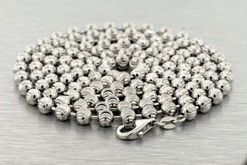 -. Feature : Length: 16", 18", 20", 22", 24" inches / Metal: .925 Sterling Silver / Width: 3.0 millimeters / Style: Fine Moon Diamond Cut Bead Ball / Clasp: Lobster Claw