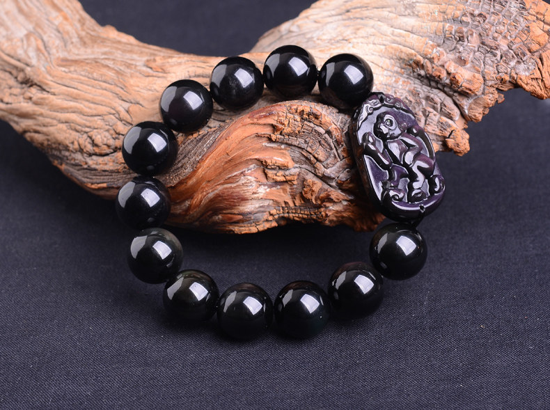 开光巳申太极姻缘手串黑曜石属猴八宝旺申手链如意寿桃男女