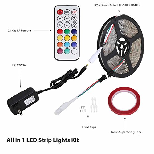 12V RGB LED Strip Lights Kit, Geekeep Addressable Dream Color LED Lighting with Chasing Effect ,Waterproof Neonpixel Led Flexible Tape Light with RF Remote Controller (5M/16.4ft)