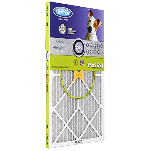 BestAir PF1425-1 Furnace Filter, 14" x 25" x 1", Carbon Infused Pet Filter, MERV 11, 6 pack