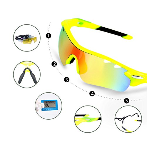 FIVE INTERCHANGEABLE LENS - Only The Main Black Lens are polarized. Restore true color, eliminate reflected light and scattered light, make the scenery more clear and soft and protect eyes perfectly. We provide five lens for you to exchange. One is the multi-color lens, the yellow one is for night activities,the blue one is for beach,the clear one is for windy weather, the black one is polarized for driving and other outdoor activities.