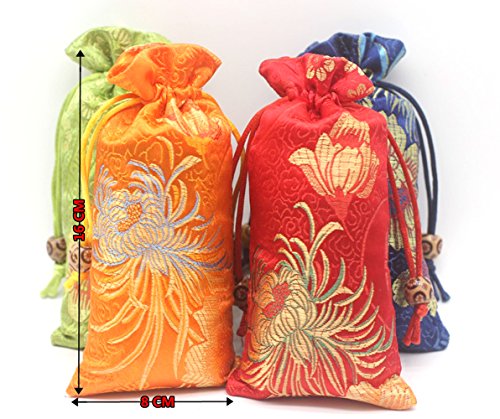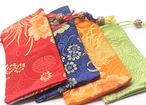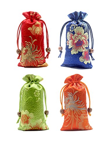 OTOFY 4PCS Upscale Silk Brocade Jewelry Pouch Bag, Drawstring Coin Purse, Gift Candy Dice Bag