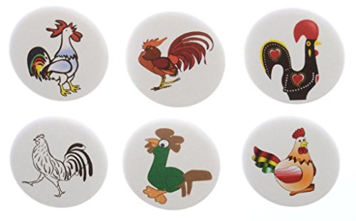 -. Title : Set of 6 Rooster Themed 1.25" Magnets - Cute Funny Chicken