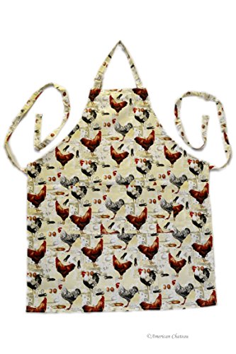 Country Farm Decor Cotton Roosters Chickens Eggs Kitchen Apron with Pocket