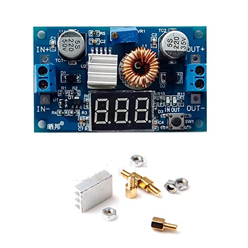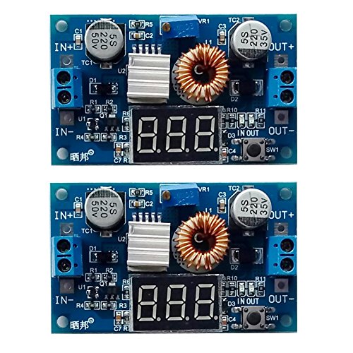 Gowoops 2 PCS of DC DC 5A 75W Step-down Adjustable Converter Power Supply Module with Voltmeter Display, with Heat Sink & Copper Cylinder