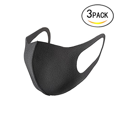 Healthcom 3 Pack Sanitary Masks Respirator Masks Safety Dust Pollen Allergy Flu Earloop Face Masks Washable Filter Face Masks,Black