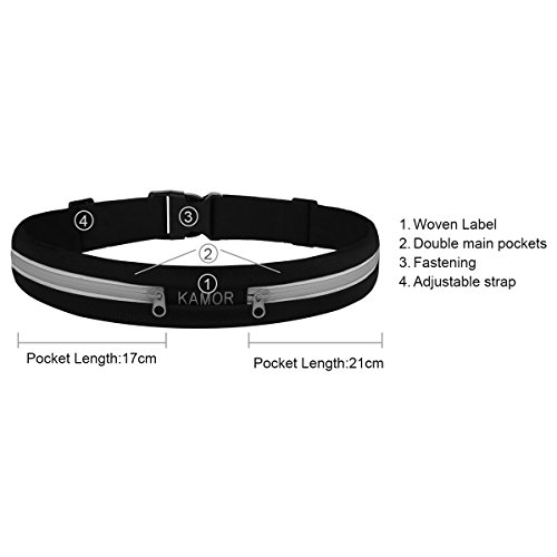 - Title : [2 Pack] Kamor® superior water resistant Running Belts / Runners Belt / Race Belt with 4CM high elastics and 3M reflective strip - Adjustable Band Fits 29" - 45"(75cm-115cm) Waists Comfortably - Two wide expandable pockets best to bring your smartphone, phones, keys, cards, cash, wallet, fitness gear, energy bars, passport and power bank - Fit for Apple iPhone 4, 4S, 5, 5S, 5C, 6, 6 plus, Blu Advance, BlackBerry Passport, Google Nexus 4, 5, Huawei Ascend Y320, Ascend P7, HTC ONE M8, M7, LG G3, G2, LG Optimus L7 P705, Motorola MOTO G, E, X, Nokia Lumia 520, 521, 530,630, 635, 730, 900, Samsung Galaxy Note 2, 3, 4, Samsung Galaxy S5, S5 Mini, S4, S4 Mini, S3 Mini, Galaxy Tab3, Galaxy S Duos, Sony Xperia M, Z3, Z2, and Most Smartphones - Running Belt/Fitness Workout Belt/Waist Pack Runner Belt/Waist Pack Belt/Runners Belt Waist Pouch/Sport Running Waist Bag/Runner's Waist Pack protects items during workouts, cycling, hiking, walking, running, riding bikes, fitness, sports, leisure and travel activities - [Lifetime Warranty]