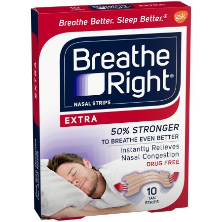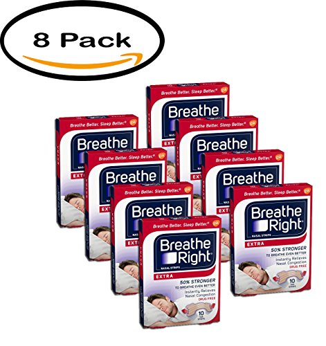 -. Title : PACK OF 8 - Breathe Right Extra Nasal Strips, Tan Color Strips for Sensitive Skin, Drug Free, 10 Strips
