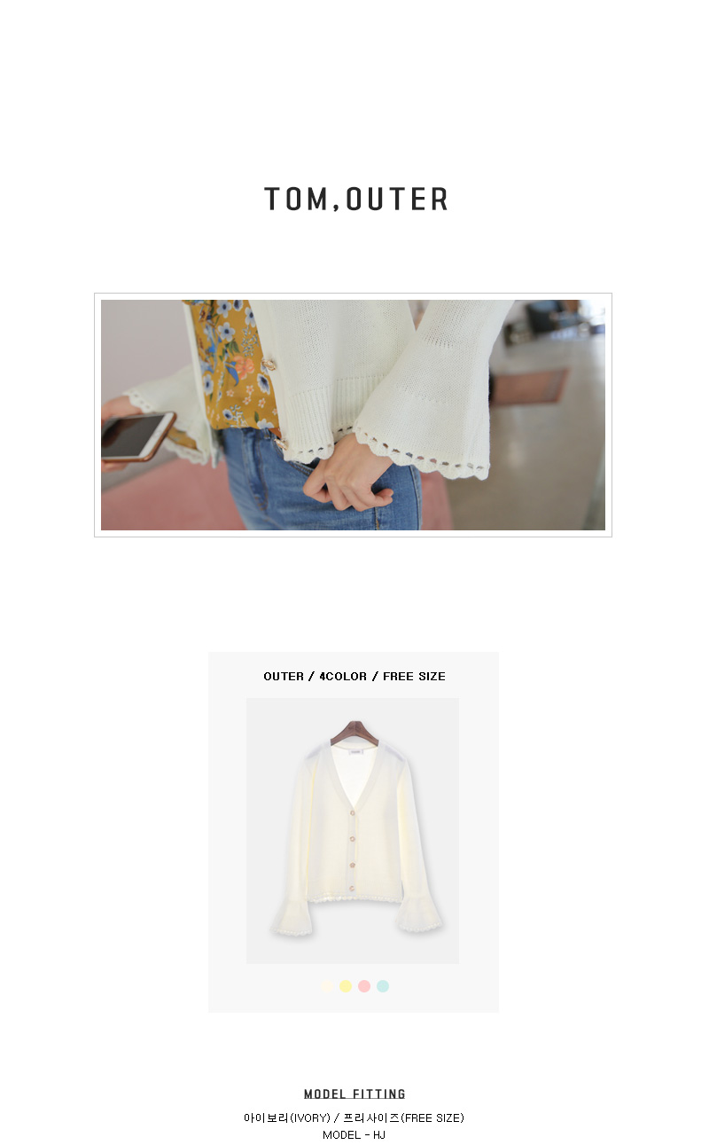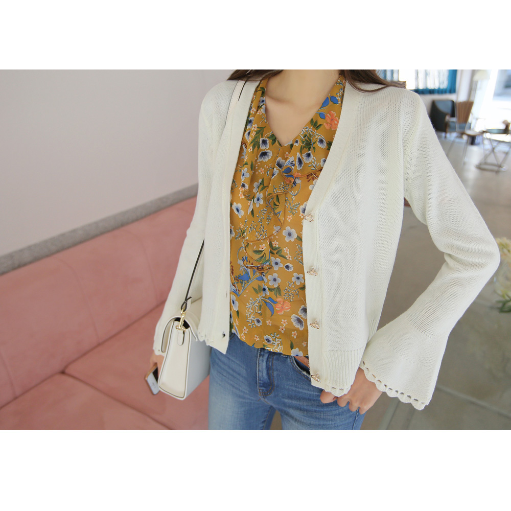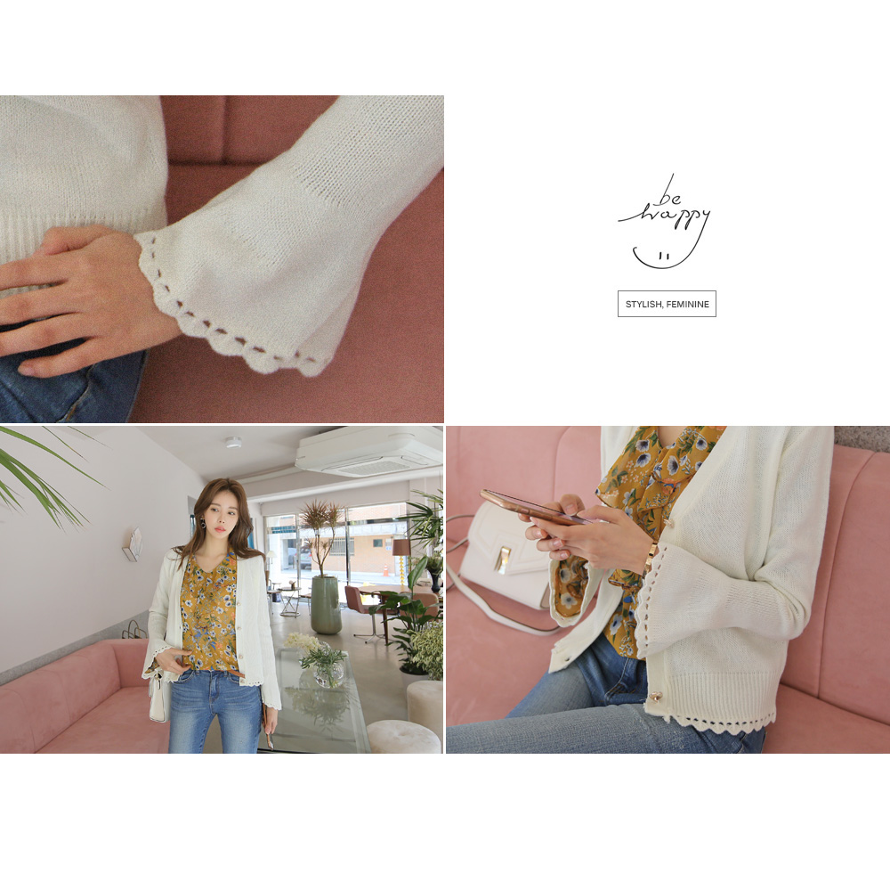 여성스러운 무드의 프릴 소매 가디건을 소개합니다.