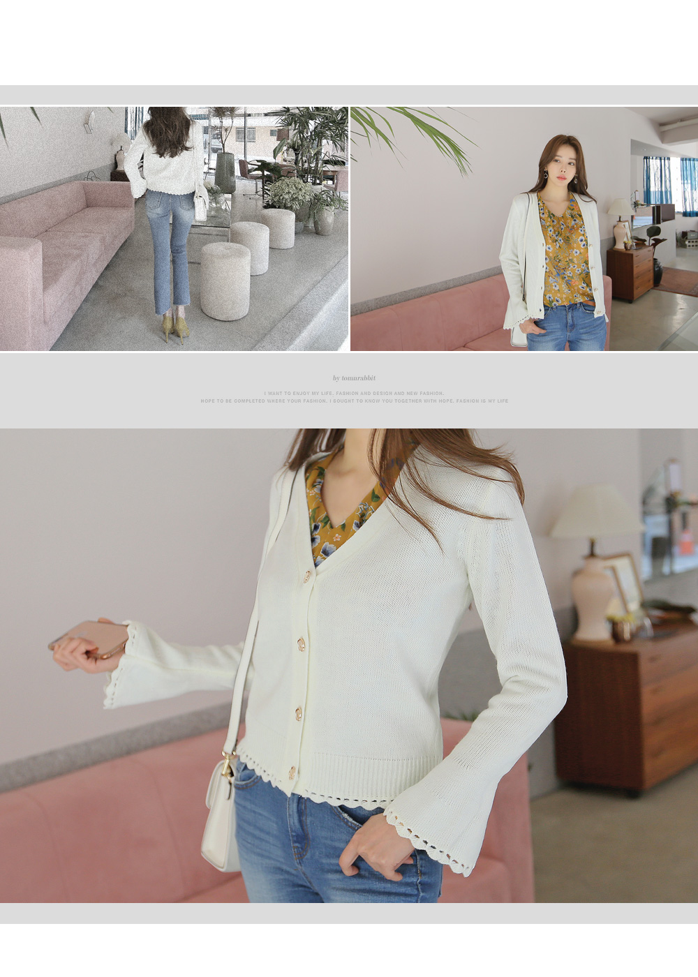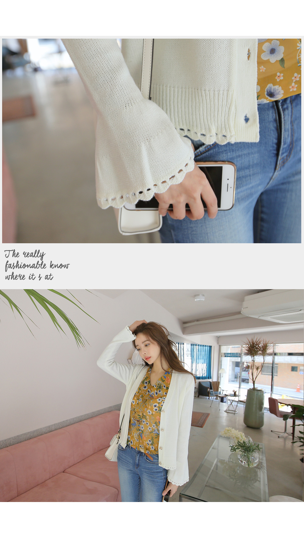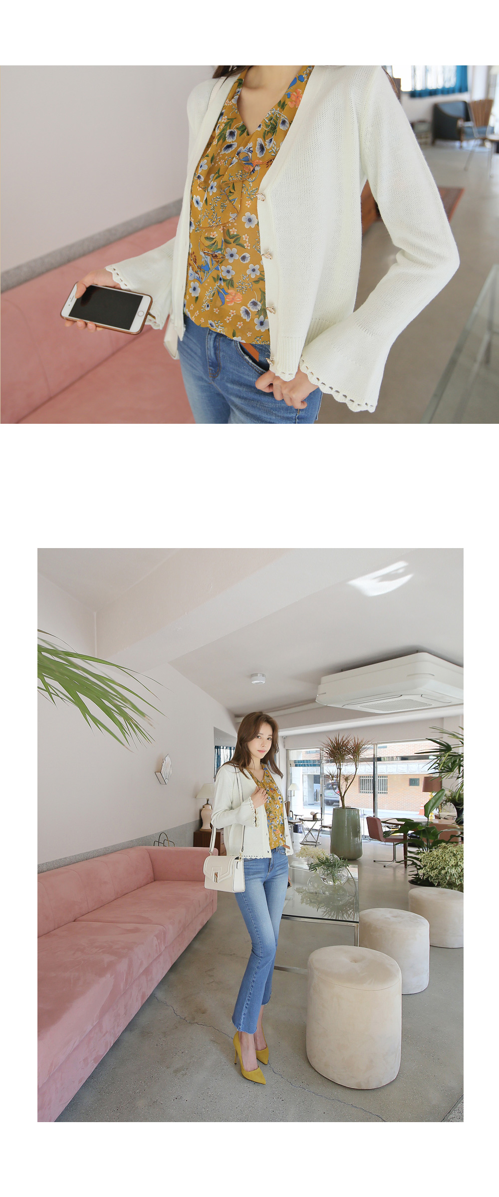 여성스러운 무드의 프릴 소매 가디건을 소개합니다.