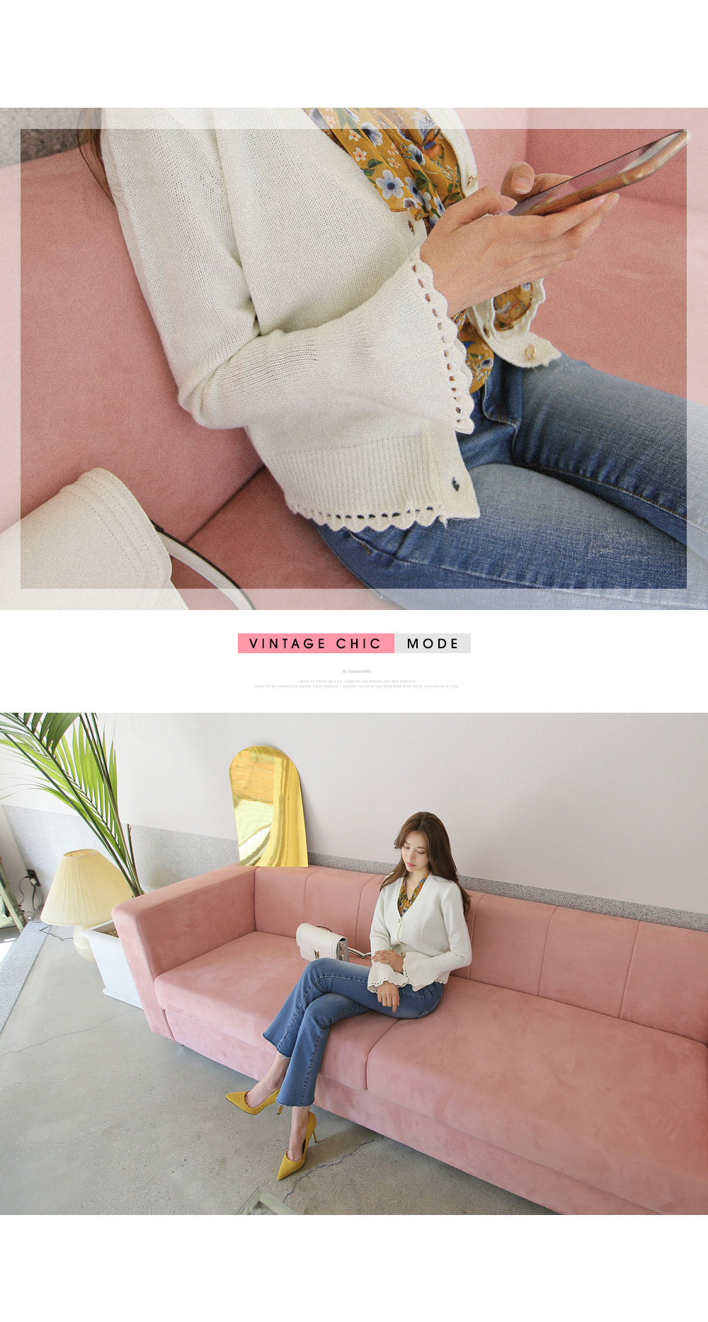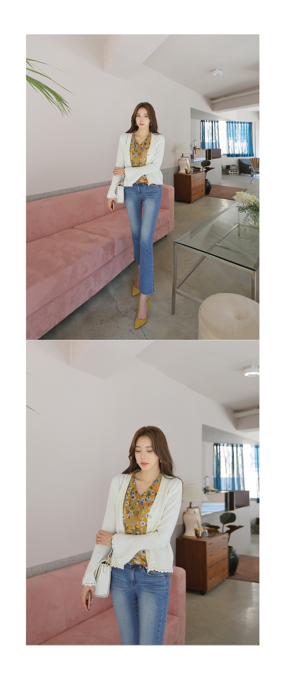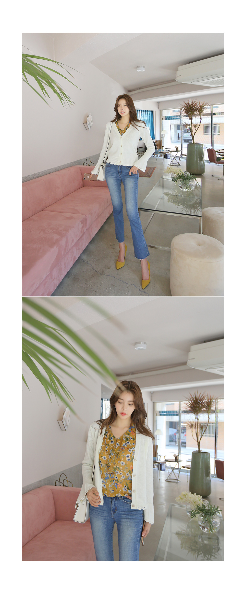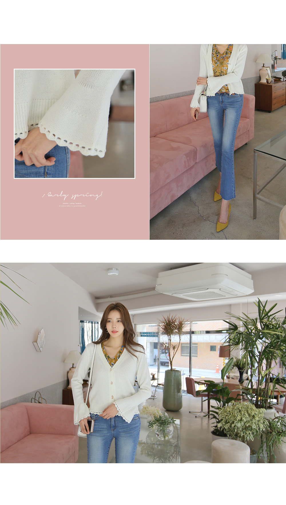 더욱 여성스러운 느낌의 가디건 아이템이랍니다.