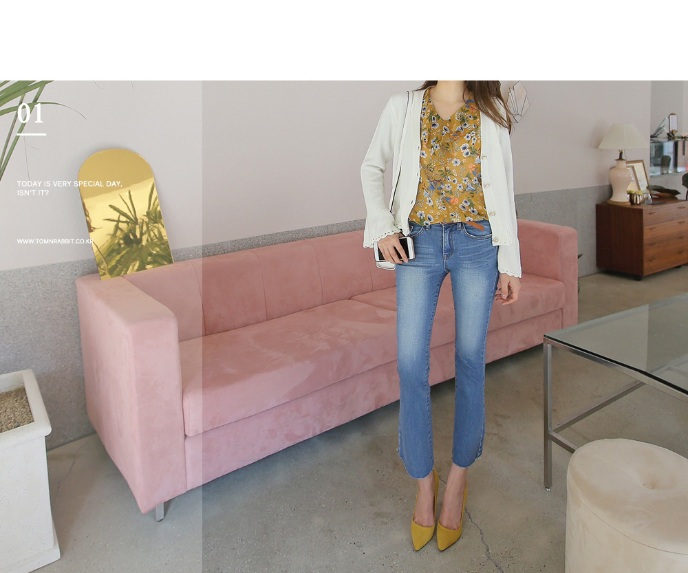 밑단과 소매단에 물결 디테일로 러블리한 무드를 더했으며