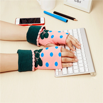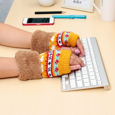 altName:Student cute winter fingerless gloves half palm plush thick warm gloves