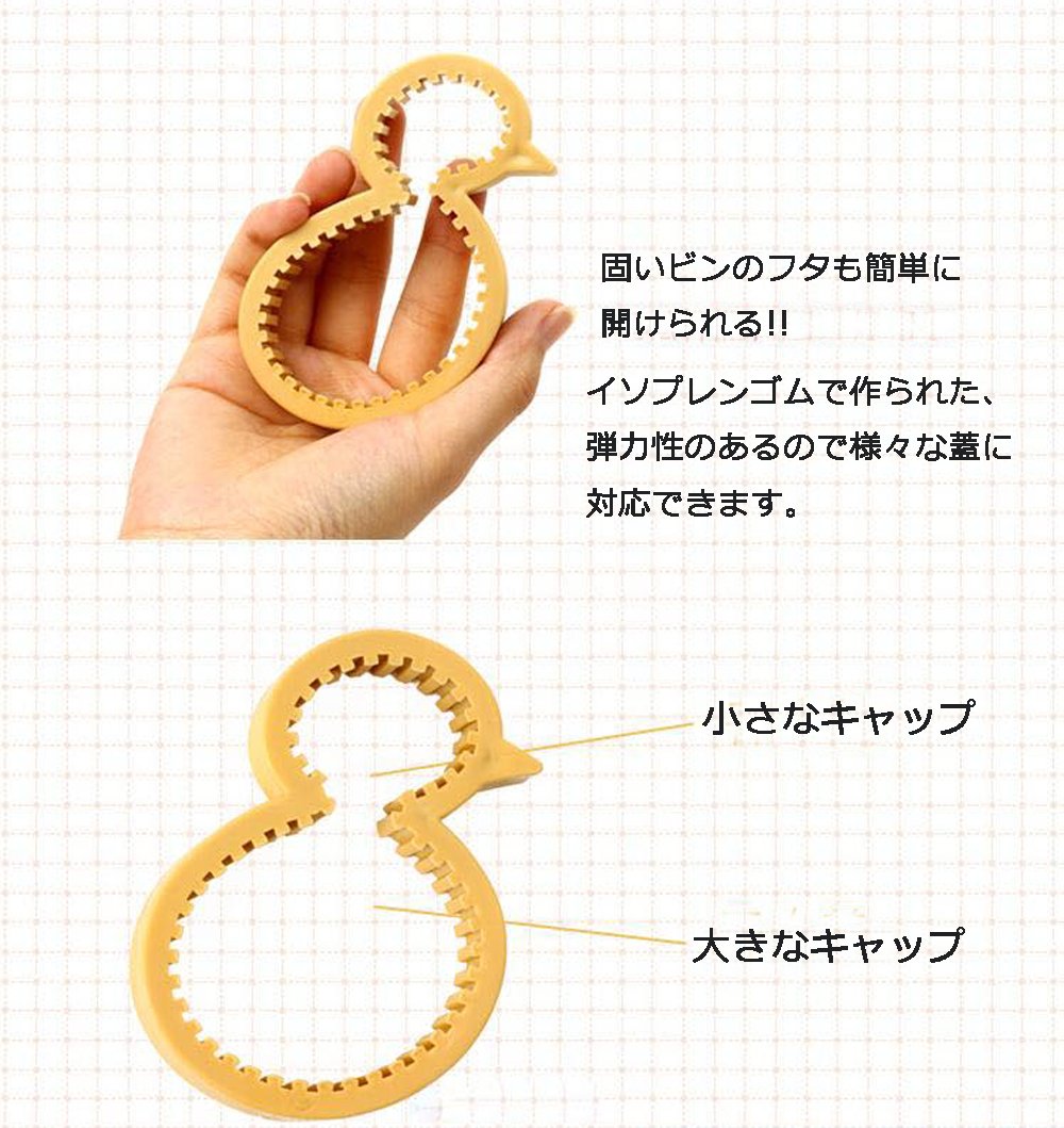 A rigid lid can be easily opened with inner jagged processing and grip power, it is a cap opener corresponding to a wide range of sizes.