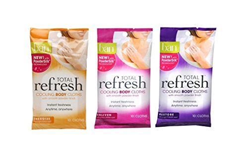 Ban Total Refresh Cooling Body Cloths Variety Pack - Enliven 10 Ct, Energize 10 Ct, Restore 10 Ct (Pack of 3)