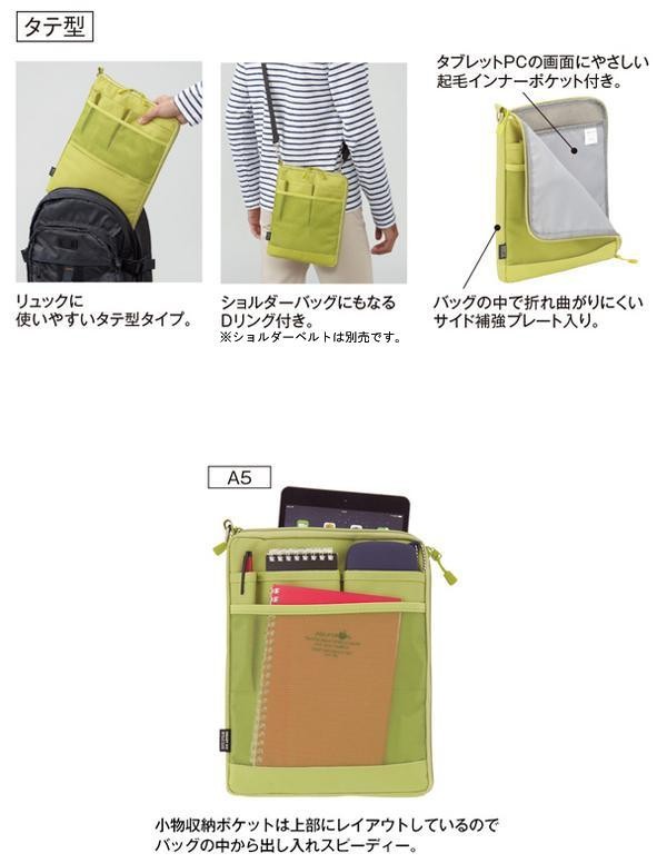| タブレットPCに優しい起毛生地ポケットが付いた薄型バッグインバッグです。 |