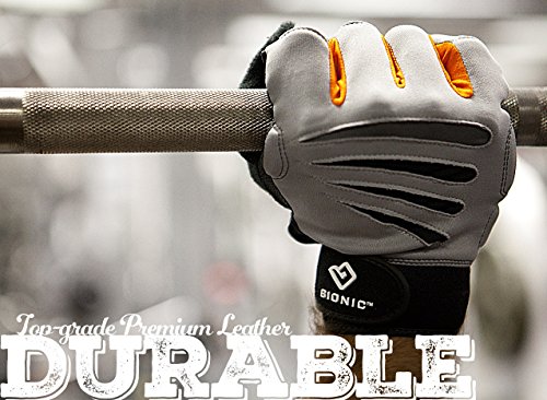 -. Binding : Sports -. Brand : Bionic -. Feature : PREVENT FATIGUE AND INCREASE STRENGTH - PATENTED ANATOMICAL PAD RELIEF SYSTEM AND GENUINE LEATHER PALM - Strategically placed relief pads even out the surface of your hand displacing the pressure from your workout. / GET THE PERFECT GRIP - PATENTED DESIGN - The Bionic Glove pre-rotated finger design adapts to your hand's natural curving motion. This patented design gives you a more effortless and comfortable grip that allows you to power through any workout. / DON'T SWEAT IT - PERSPIRATION MANAGEMENT - Wipe away sweat with The PolytowelTM thumb and reach your goal. The terrycloth pads inside the gloves are strategically placed in high risk areas to manage your perspiration. Machine wash no bleach, air dry. / KEEP A COOL HAND - MAXIMUM BREATHABILITY - By using the premium material Cool-OnTM for the back of the glove and Lycra® between the fingers and flexion zones, these gloves offer maximum breathability and flexibility for your workout. / DURABLE - The Genuine leather palm gives this glove a long lifespan, no matter how many reps you put them through -. Label : Bionic Gloves -. Manufacturer : Bionic Gloves -. Model : FCTFMM-P -. PackageQuantity : 1 -. ProductGroup : Sports -. ProductTypeName : SPORTING_GOODS -. Publisher : Bionic Gloves -. Studio : Bionic Gloves -. Title : Bionic Glove Men's Cross-Training Full Finger Gloves w/ Natural Fit Technology, Gray/Orange (PAIR)
