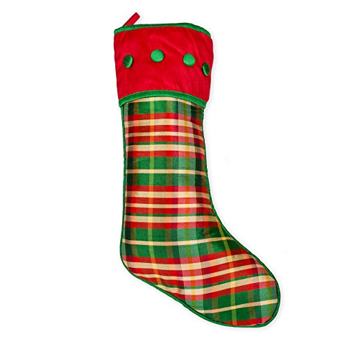 20 inch Green and Gold Tone Plaid with Button Christmas Stocking