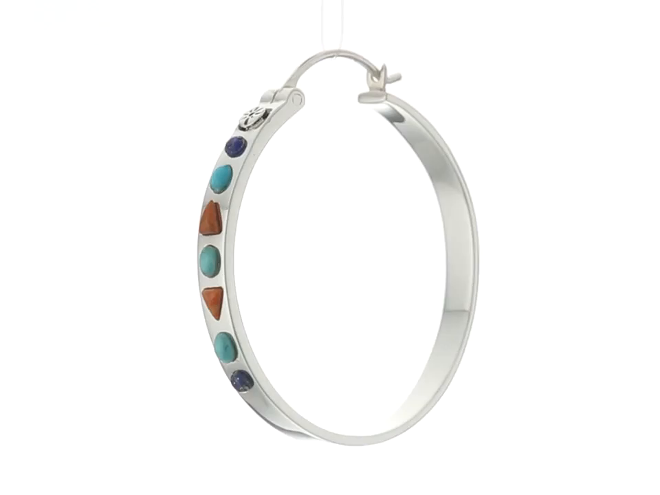 Barse Sterling Silver and Genuine Stone Hoop Earrings