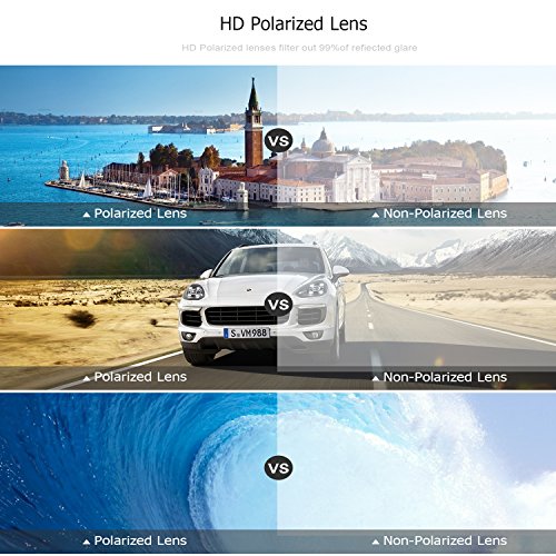 High Quality Polycarbonate Polarized Lenses: Lenses offer top UV protection blocking out 100% of all UVA, UVB, UVC and harmful blue light up to 400nm, and it is keeping you safe from blinding rays by filtering out 99% of reflected glare without the haze and optical distortion that can come with traditional polarized lenses.