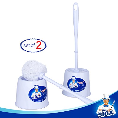 MR. SIGA Toilet Bowl Brush and Caddy, Dia 12cm x 38cm Height, Pack of 2 Set