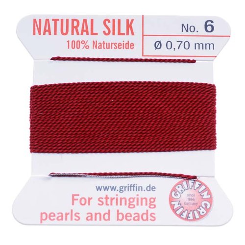 Griffin Silk Beading Cord and Needle, Size 6, Garnet Red