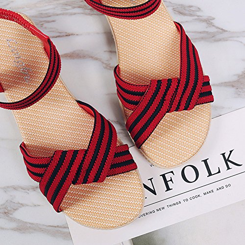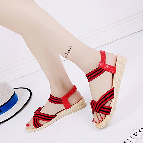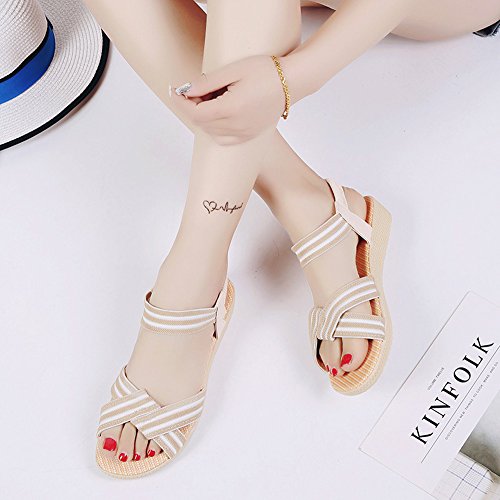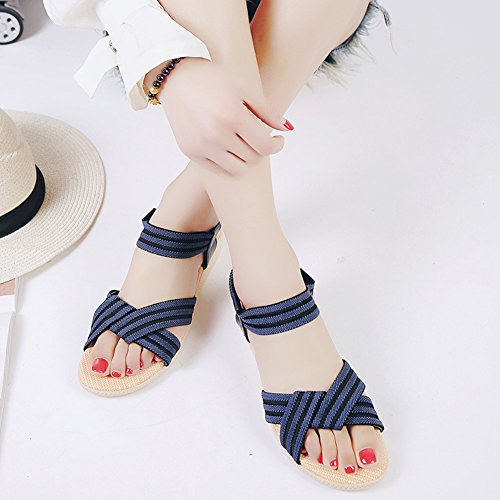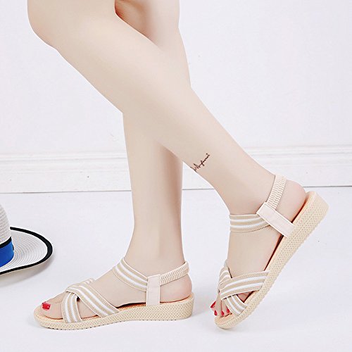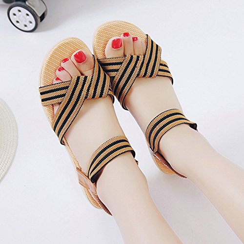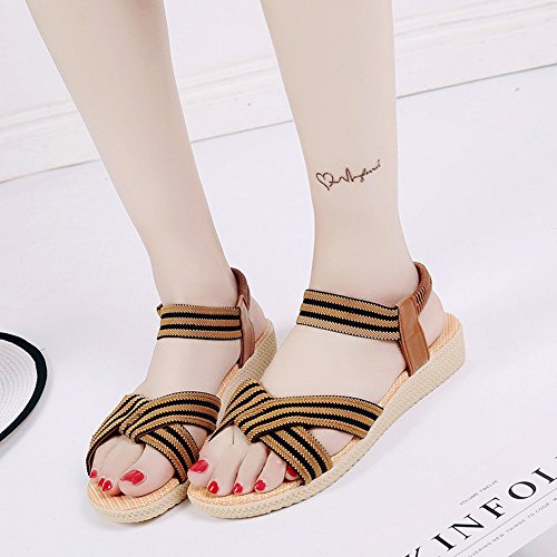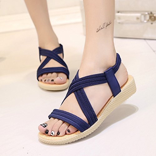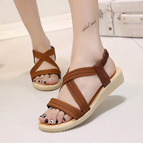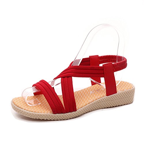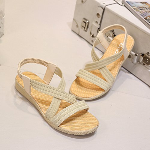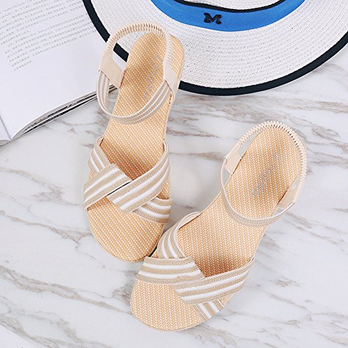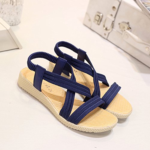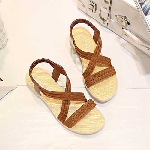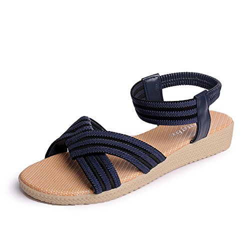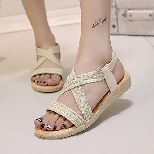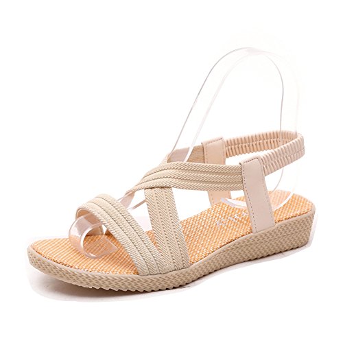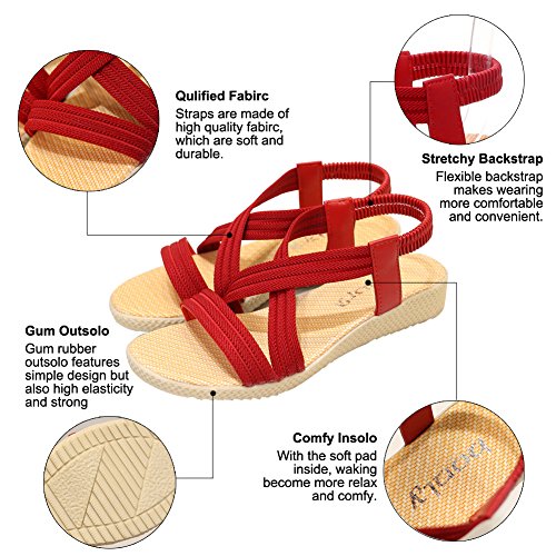 Product Description This comfortable sandal with stylish straps design is perfect for casual waking around in summer. The sandal features an open toe silhouette, stretchy back-strap, and slip on design. Finished with lightly cushioned insole for all day comfort. If you have problem of the item, please contact us we will do our best to resolve the problem for you Package: 1 x A pair of shoes 0