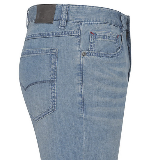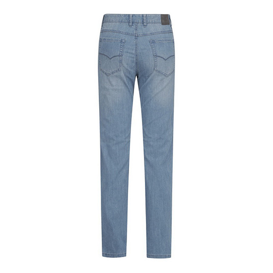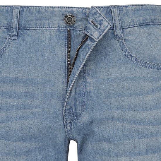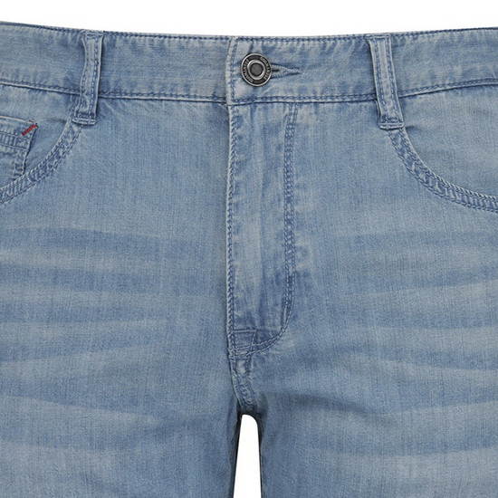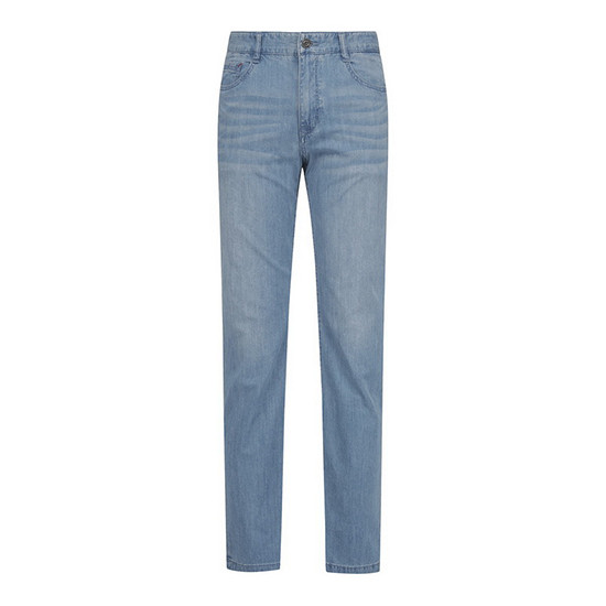 - 라이트한 캣워싱 디테일로 캐주얼한 남성 데님 팬츠.