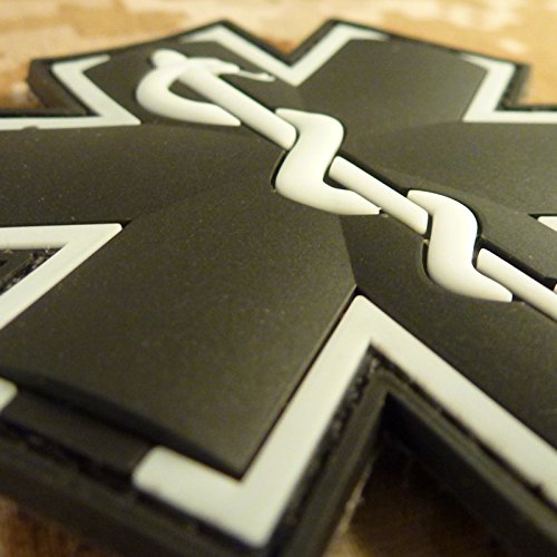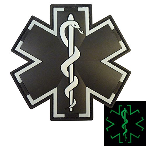Glow Dark ACU Black EMS EMT Medic Paramedic Star of Life Morale Tactical PVC Touch Fastener Patch