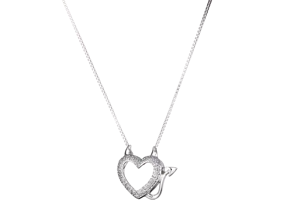 Sterling Silver and Diamond Devil Heart Pendant Necklace