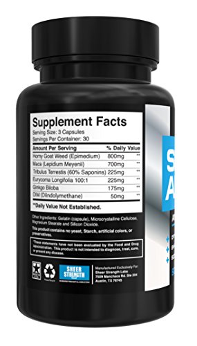 INCREASED MENTAL FOCUS, NATURAL ENERGY LEVELS, AND OVERALL WELL-BEING : Sheer ALPHA stacks it's powerful testosterone boosting formula with Ginkgo Biloba, a known cognitive enhancer, and Maca, a powerful mood optimizer, along with Tribulus Terrestris, a proven focus and virility supplement. Together, you'll notice an immediate boost in focus, energy, and overall well-being to enhance the benefits of this powerful testosterone supplement