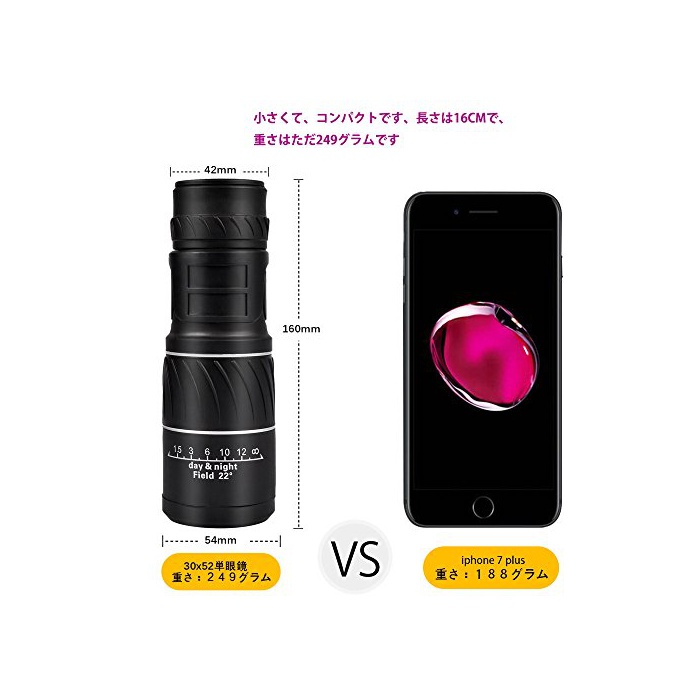 【고배율 단안경 성능】단안경 배율:30배.단안경 포커스 시스템:더블 포커스.단안경 접안렌즈 직경:42MM .단안경 대물 렌즈 직경:54mm.단안경 중량:249그램.