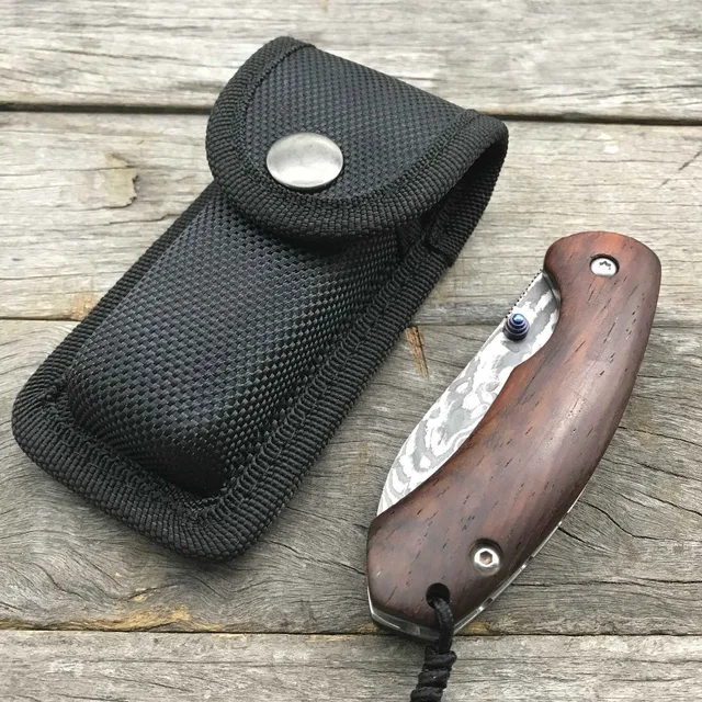 | [해외] LDT 토마스 접는 칼 다마스커스 블레이드 노란색 백단 핸들 야외 포켓 사냥 칼 캠핑 생존 EDC 도구 OEM |