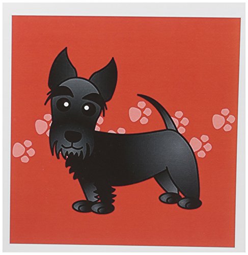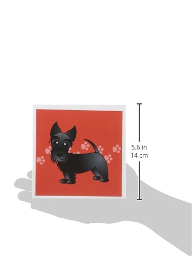3dRose Cute Black Scottie Cartoon Dog Red with Pawprints Greeting Cards, Set of 12 (gc_40868_2)