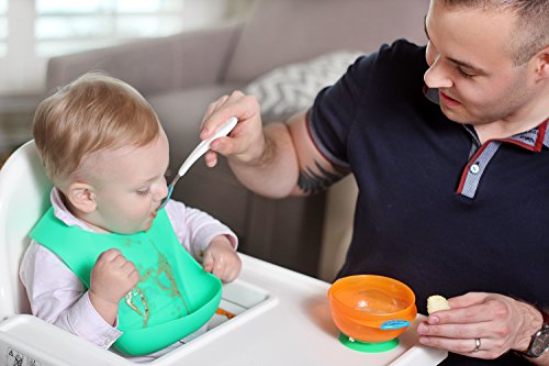 -. Feature : ★UNLIKE OTHER WATERPROOF SILICONE BABY BIBS WITH A FOOD CATCHER POCKET, THESE POCKETS ACTUALLY STAY OPEN AND WE FEATURE 2 CONVENIENT POCKET WIDTH SIZES (7.5" / 8.5") SO YOU CAN MIX AND MATCH BASED ON SIZE OF CHILD OR SEATING AREA. Catches Most Messes So Less Time In Cleaning Up, And More Time Enjoying Your Little Dude Or Dudette / ★DON'T LEAVE DAD EMPTY HANDED. These bibs are the PERFECT SHOWER GIFT FOR MEN...be that thoughtful someone that gets Dad something (and psst...Mom will also love these bibs). Daddy Endorsed aims to provide baby care products that make Dad's life easier with Daddy Goals of being prepared, organized, and ready to go while feeling confident and cool with their little one(s) / ★2 PACK OF BIBS IN TWO NEUTRAL COLORS so they can be used for both boys and girls (Green = 7.5" pocket width size / Gray = 8.5" pocket width size). Fits children from 5 months into the toddler years / ★ADJUSTABLE NECKBAND that not only stays in place, but won't rip or tear. Made of soft silicone that is DURABLE, STAIN-RESISTANT, and SUPER EASY TO CLEAN: Rinse off, wipe down, or put in the dishwasher (yes, dishwasher safe - no throwing dirty cloth bibs into your washer and wasting time). Tough staining foods and drool are no match for these bibs. FLEXIBLE: Rolls up conveniently into your diaper / carry bag. Great for HOME OR ON-THE-GO / ★Daddy Endorsed is here to help MAKE YOUR LIFE EASIER, so you can SPEND MORE TIME WITH YOUR KID(S)