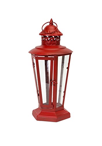 -. Title : 18" Decorative Old Red Vintage Inspired Pillar Candle Lantern