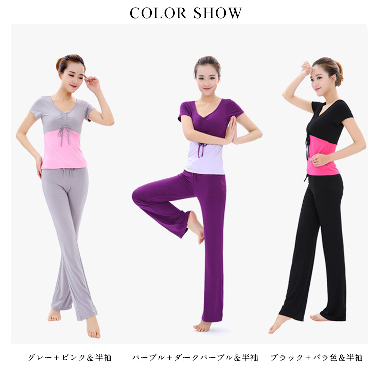 | 色 | グレー+ピンク&半袖 パープル+ダークパープル&半袖 ブラック+バラ色&半袖 グレー+ピンク&7分袖 ライトパープル+ダークパープル&7分袖 ブラック+バラ色&7分袖 グレー+ピンク&長袖 ライトパープル+ダークパープル&長袖 ブラック+バラ色&長袖 |