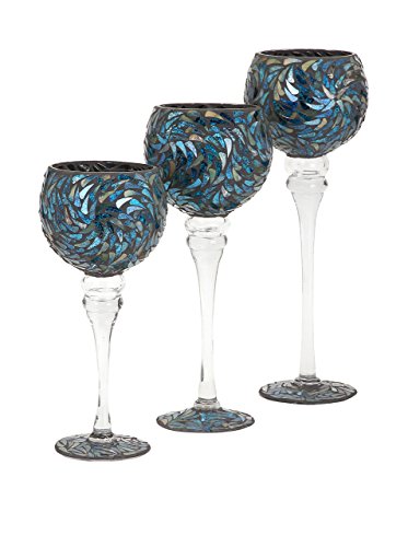 IMAX 80026-3 Peacock Mosaic Votive Holders - Set of Three, Turquoise