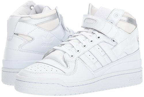 adidas Originals Men's Shoes | Forum Mid Refined Sneakers, White/White/Metallic Silver, (7.5 M US)
