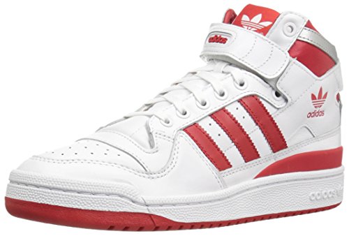 adidas Originals Men's Forum Mid Refined Fashion Sneaker, White/Scarlet/Silver Met, 8 M US