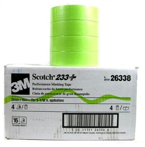 -. Feature : 16 Rolls(1 Case) of 1-1/2"(18mm) 3M 233+ Green AUTOMOTIVE REFINISH MASKING TAPE PART# 26338-16