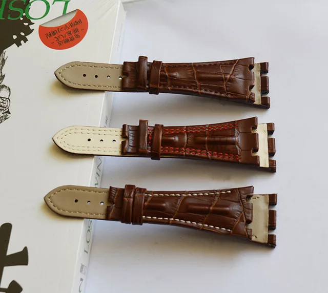 | [해외]새로운 도착 28 미리메터 ap 시계 줄, 3 스타일, 화이트/브라운/레드 라인, 정품 가죽 시계 스트랩, 무료 배송 |